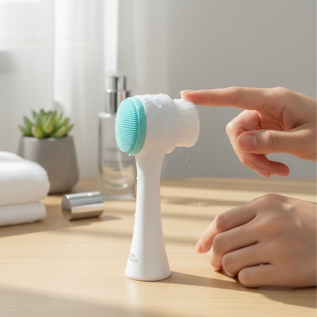 Práctico cepillo y masajeador facial de silicona con fibras suaves, diseñado para limpiar profundamente y estimular la piel con delicadeza. Ideal para tu rutina diaria de cuidado facial, ayudando a mantener el rostro limpio, fresco y revitalizado.