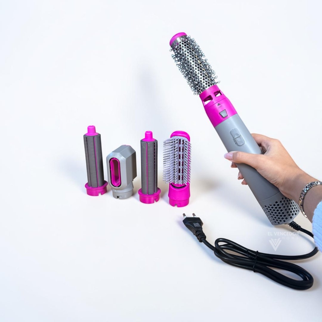 Kit de Cepillos 5 en 1 para peinado, que incluye funciones de secador, trenzado, rizos y más, ideal para lograr distintos estilos de forma rápida y sencilla. Su diseño versátil permite secar y moldear el cabello al mismo tiempo, siendo perfecto para uso diario en casa o para resultados más profesionales sin complicaciones.