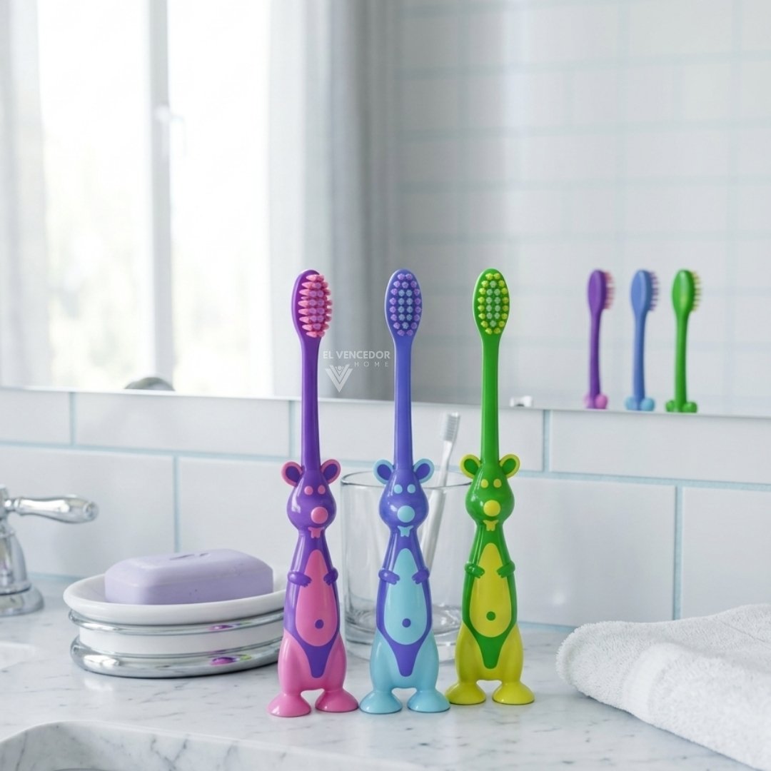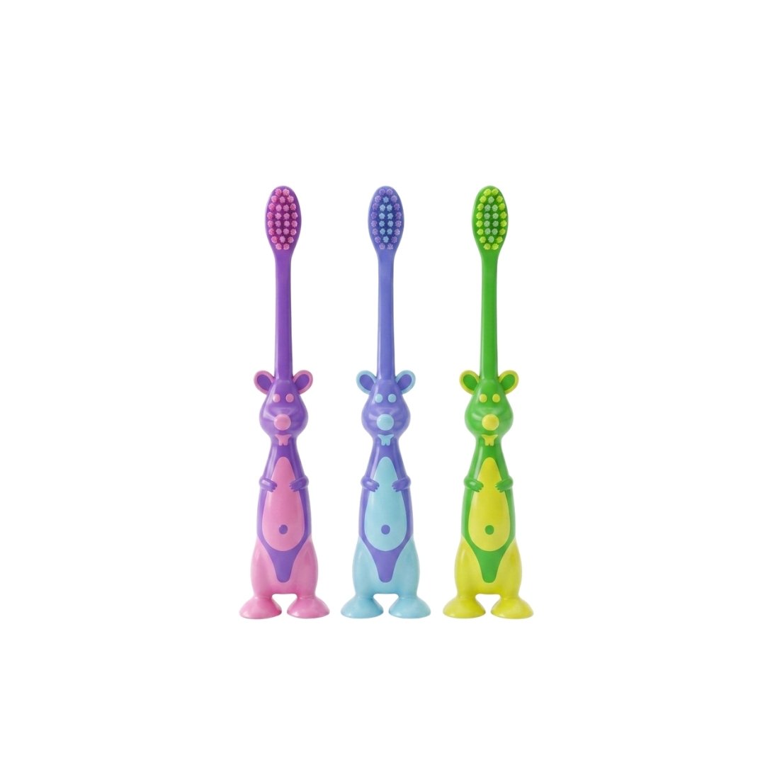 Set de 3 cepillos infantiles con diseños de canguritos, ideales para el cuidado diario del cabello de los más pequeños. Suaves, prácticos y con un diseño divertido que hace más agradable la rutina de peinado, cuidando el cabello sin tirones.
