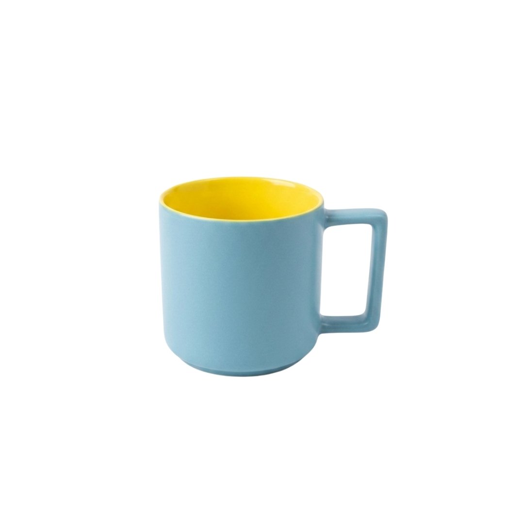 Taza de cerámica en dos colores, ideal para disfrutar café, té o cualquier bebida caliente con estilo. Su diseño moderno y resistente la hace perfecta para el uso diario en el hogar o la oficina, aportando un toque elegante y sencillo a cada momento.