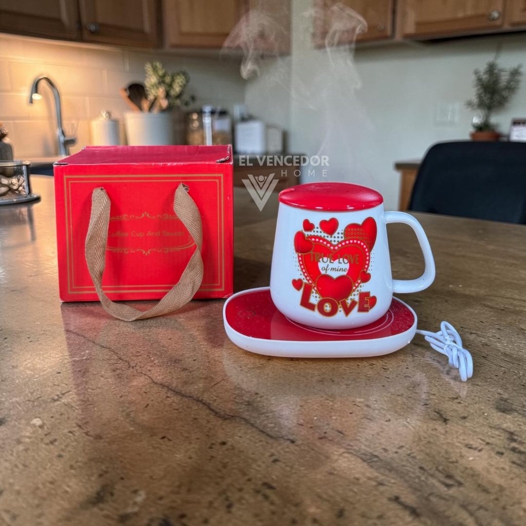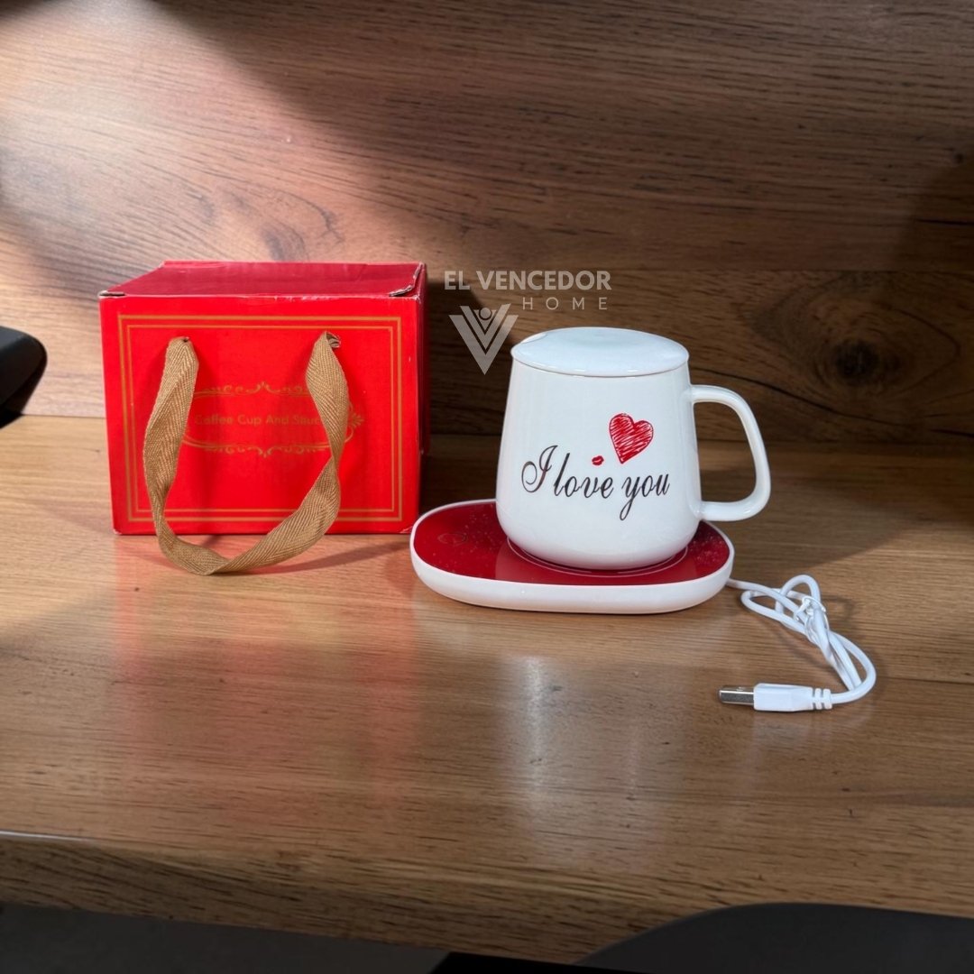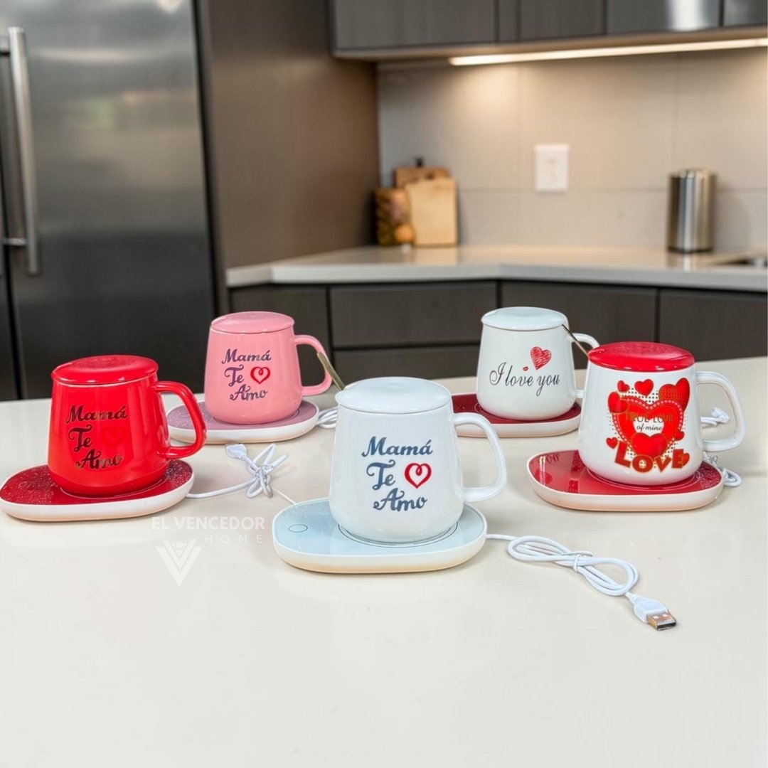 Kit de taza de cerámica con tapa, incluye cucharita de metal dorado y base calentadora, presentado con delicado diseño “Día de la madre”. Ideal para mantener tus bebidas calientes por más tiempo y sorprender con un regalo elegante y funcional. Perfecto para disfrutar de café, té o infusiones con un toque especial.