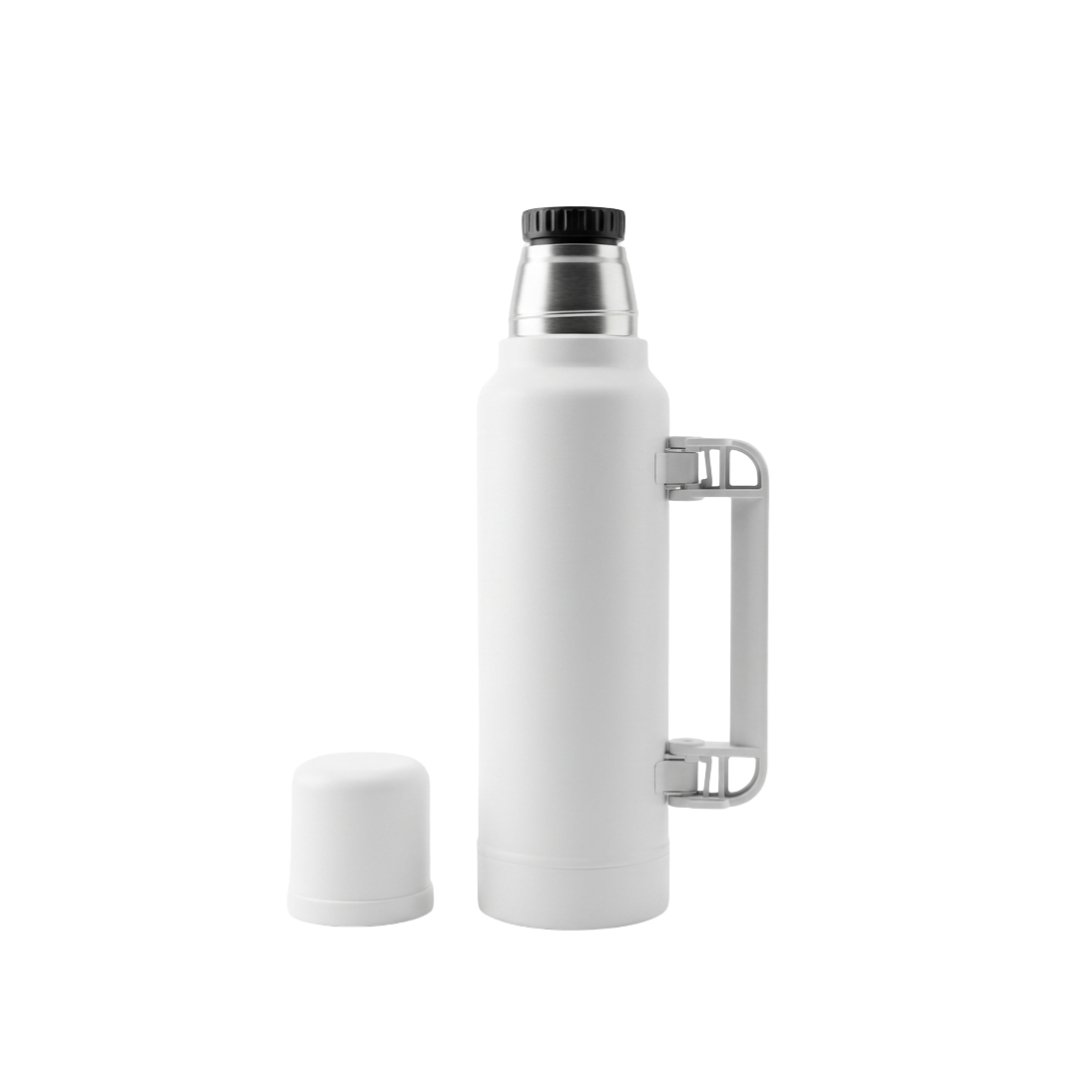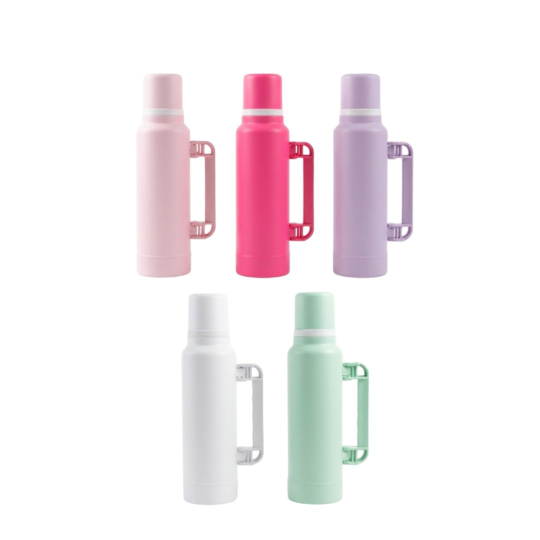 Termo grande de acero inoxidable con 1,3 litros de capacidad, ideal para mantener tus bebidas calientes o frías por más tiempo. Perfecto para el hogar, la oficina o salidas al aire libre.