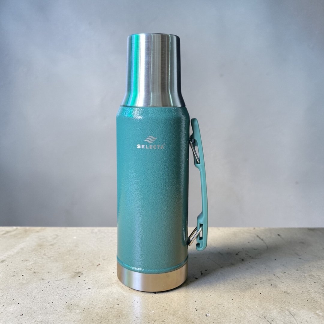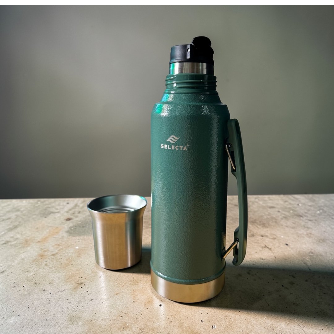 Termo Selecta de 1,2 litros, ideal para mantener la temperatura de tus bebidas por más tiempo. Perfecto para el mate, café o té, tanto en el uso diario como en salidas o viajes. Su capacidad y diseño práctico lo convierten en una opción cómoda, resistente y funcional.